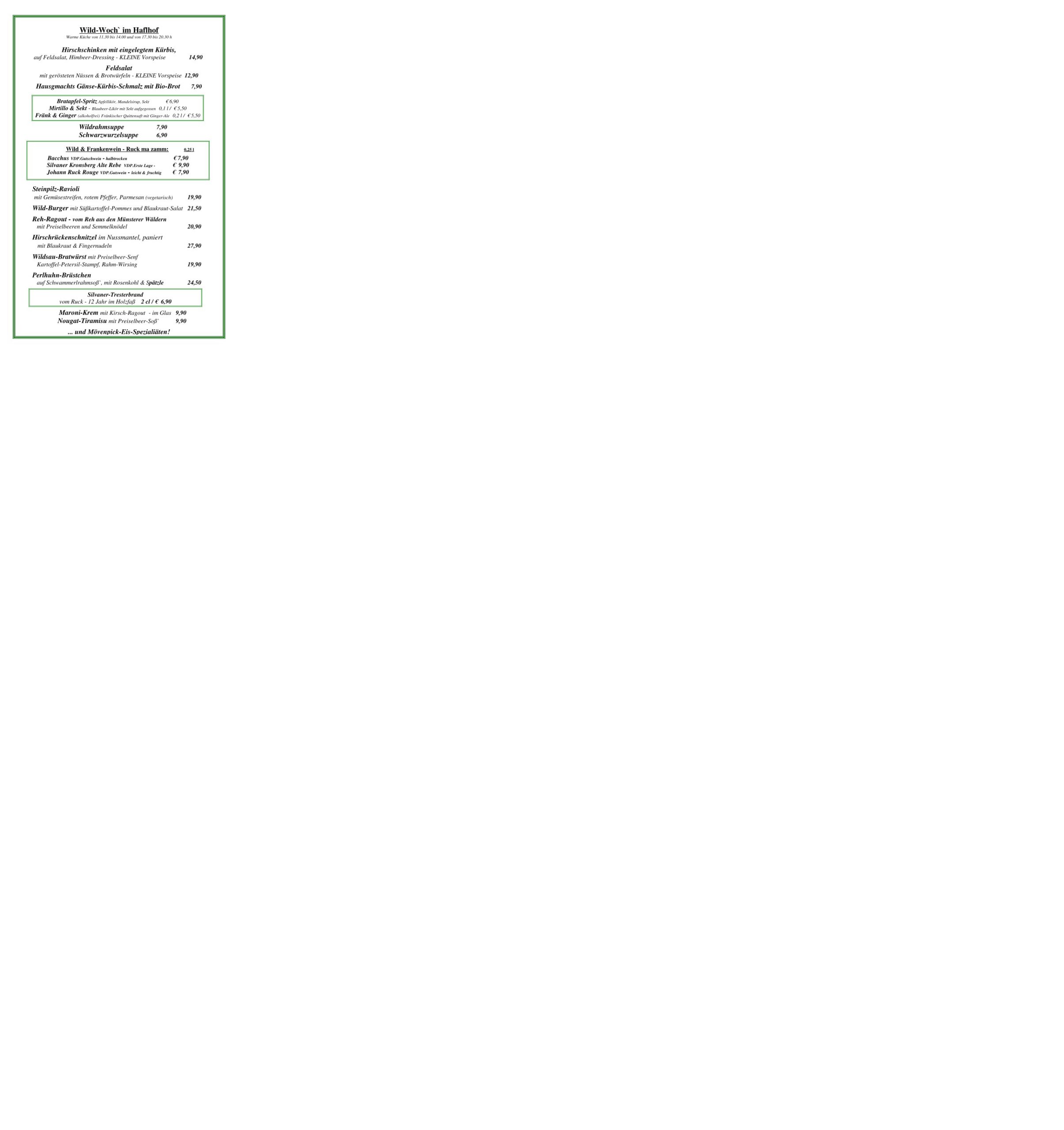 Unsere Schmankerlkarte zur Wildwochen vom 7. bis 16. November:SK Wild 2025